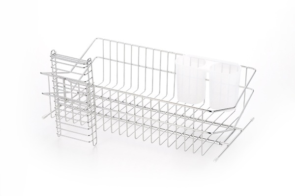 V字型の水切りラックは食器等の出し入れもラクラク!バスケットの中に入っている物も隙間から落ちずらくなってます。