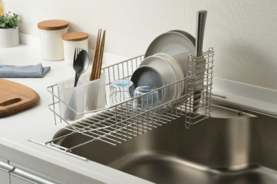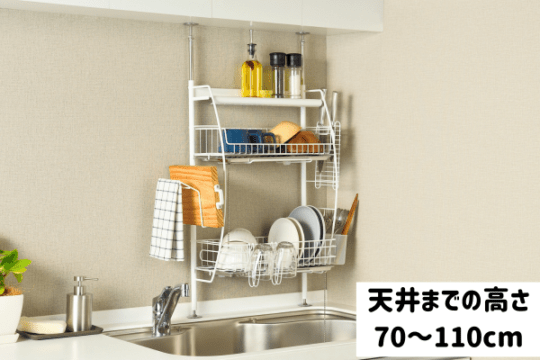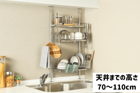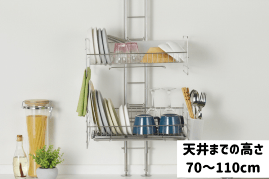 【予約】流れるつっぱり水切りラック シルバー【5月中旬入荷予定】