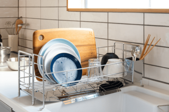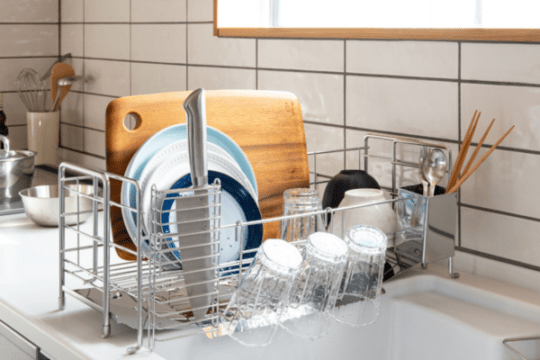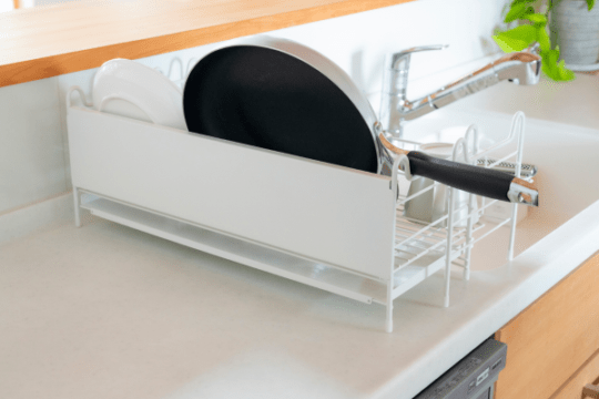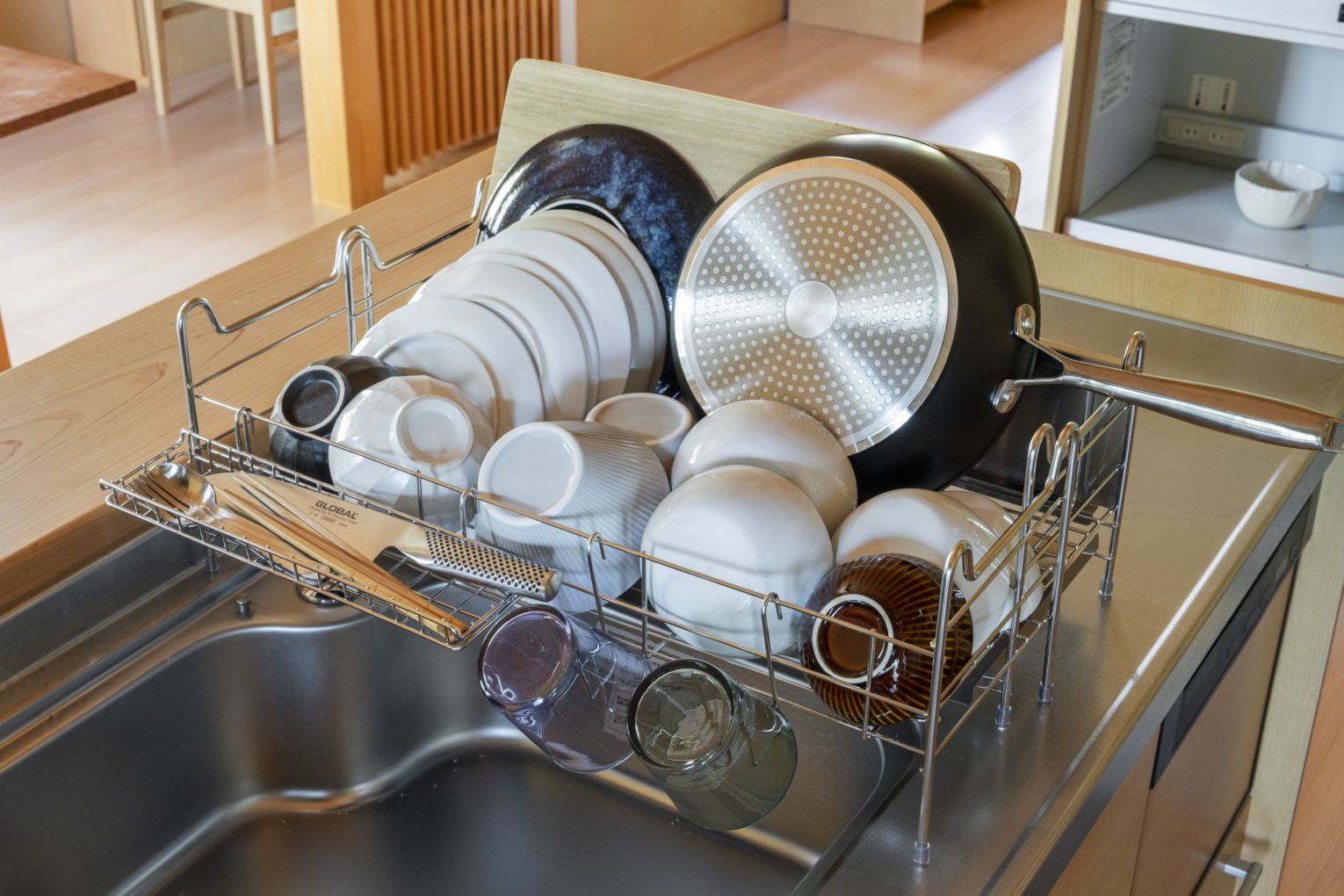 手前に水を流すから奥側に置けます。カトラリー&グラスホルダーは取り外し可能です。