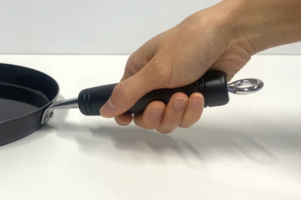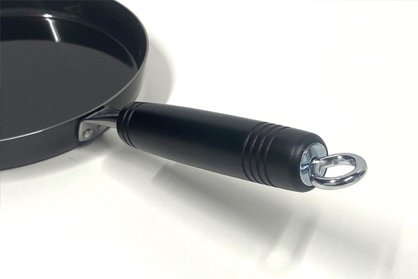 黒い木柄は、焦げついても目立ちにくい。取っ手のフックは吊り下げ収納に便利。