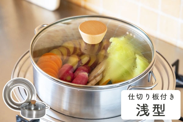 【予約】すっきり暮らすステンレスせいろ 浅型 仕切り板付き【2月中旬入荷予定】