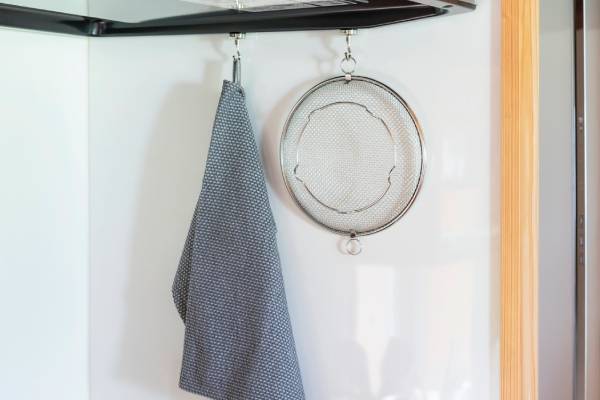 持ち上げフックを使えば、食材に触れずにざるごと移動できるので便利。