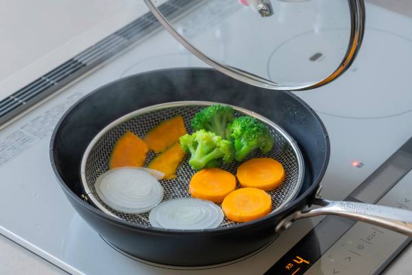 脚高設計のため、蒸し料理の際も食材が水に浸りにくい。