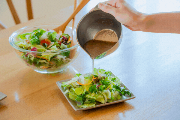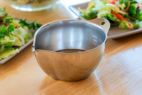 目盛り付きで計量カップを使わずにドレッシングや合わせダレなど作れます。