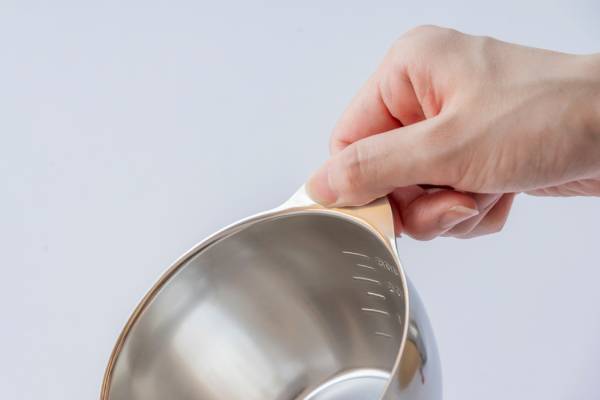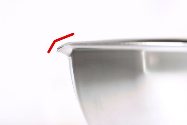 一般的なボウルの注ぎ口は突き出しが1段階ですが、キレッキレボウルは2段階に折り曲げた注ぎ口を採用。