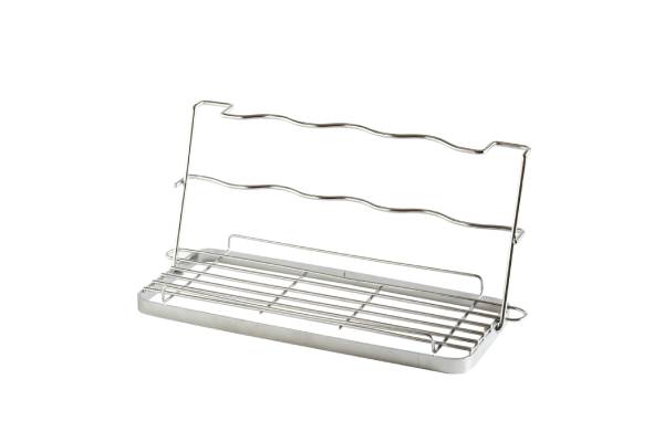 背もたれには二段構造の波型ワイヤーを採用し、サイズ問わず安定して立て掛けられます。