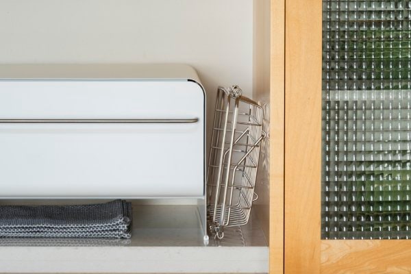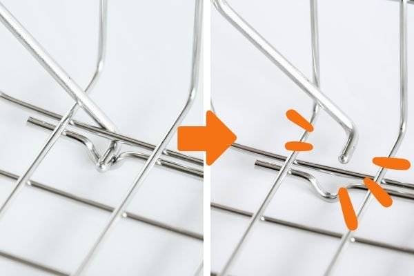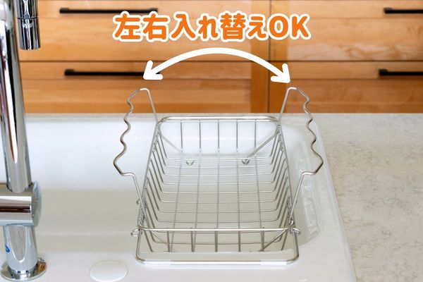 背もたれワイヤーは取り外し可能で、キッチンの仕様に応じて左右に入れ替えも可能です。
