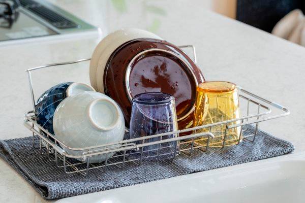 吸水タオルやマットを敷いて使えば、食器が直接触れず衛生的に乾かせます。