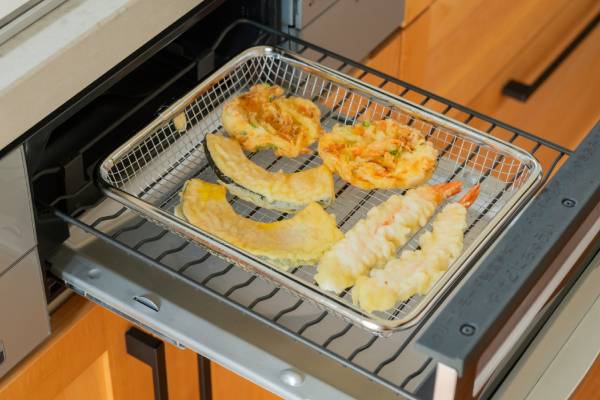 アルミホイルでは蒸れがちな裏側も、バスケットを使えば熱が均一に通り、裏側までサクッと仕上がります。