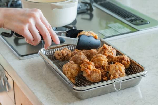 平らな面が広く、食材を重ねずに並べられ、油切りに最適。