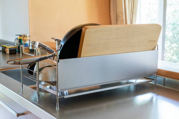 シンク横にすっきり置けるスリム設計!省スペースながら大容量な水切りラックを実現しました。