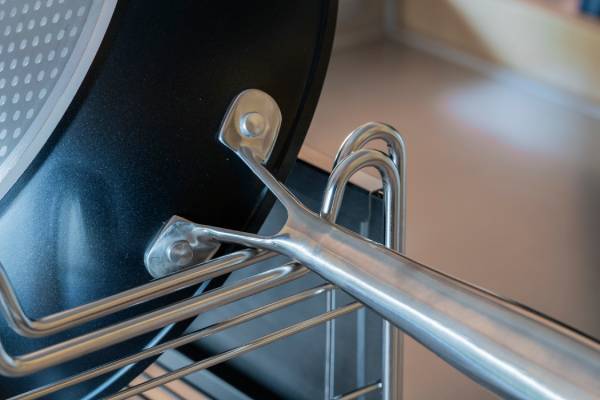 フライパンや片手鍋も置きやすいU字型。取っ手が引っ掛かり、安定感を高めます。