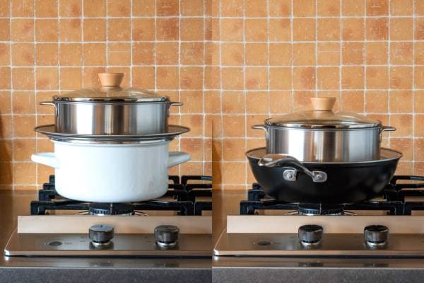 鍋やフライパンが蒸し器に早変わり。