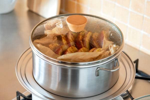フタを開けずに中の様子を確認出来るため蒸しすぎを防いでちょうどいい仕上がりに。