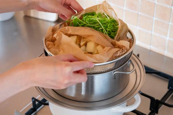 竹製のせいろと同じ使用方法で手軽に蒸し料理が楽しめます。