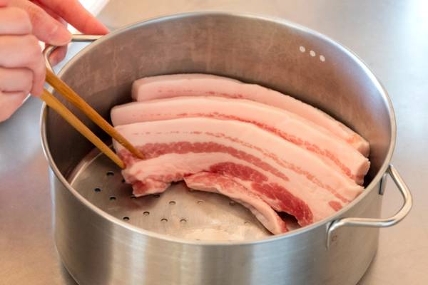 蒸すことで余分な油が落ちてヘルシーに仕上がります。