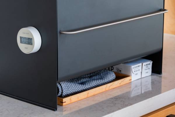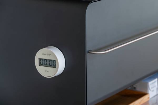 スチール製でできているため、キッチンタイマーやマグネットを貼り付けることもできます。