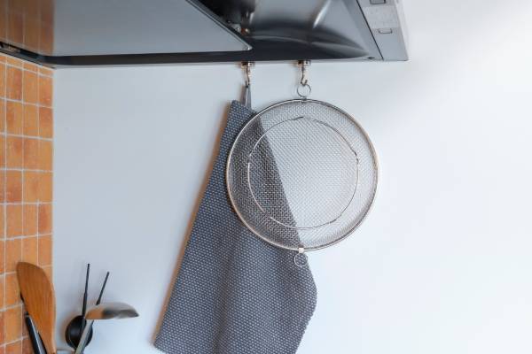 持ち上げフックを使えば、食材に触れずにざるごと移動できるので便利。