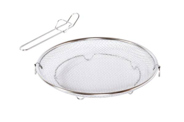 取っ手のない盆ざるはフライパンや鍋に入れやすく、蒸し料理にも最適。