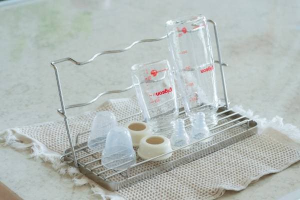 二段の背もたれで背の低い哺乳瓶も立て掛けて乾かせます。